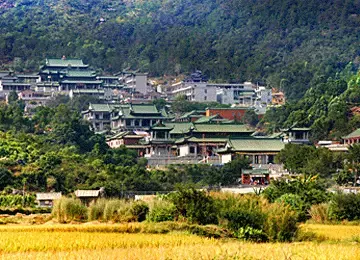 华帝山在山麓处是一片辽阔的平原,这里田园风光十分秀丽,村落整齐有致、村前小溪潺潺,田园上绿油油一片,稻香扑鼻,好一幅诗情画意的田园风景画。