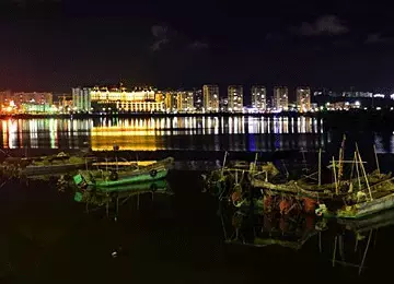 在幽蓝的星空下,海浪柔柔地拍打着海岸,犹如一位少女温柔地诉说着汕尾的夜晚风情。
