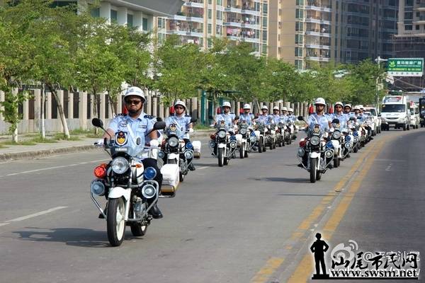 9月25日上午,汕尾市公安局在府前广场举行了全市公安武警2014年国庆安保工作誓师大会暨武装巡游活动。上午9时,警车巡游活动正式开始,各警种特种车辆从府前广场出发,途经红海东路、香洲东路、湖/海滨大道、汕尾大道、香城路、城南路北、康平路,最后到达市公安局。本次活动有来自特警、女警、武警、边防、消防、机关、交警等共8个方阵400多名警力参加,全方位展示了我市公安武警威武之师、文明之师的精神风貌,有力震慑各类违法犯罪活动,全力营造良好稳定的社会氛围,庄重地向全市人民表达了捍卫汕尾平安、战之必胜的信心和决心,向建国65周年献礼。