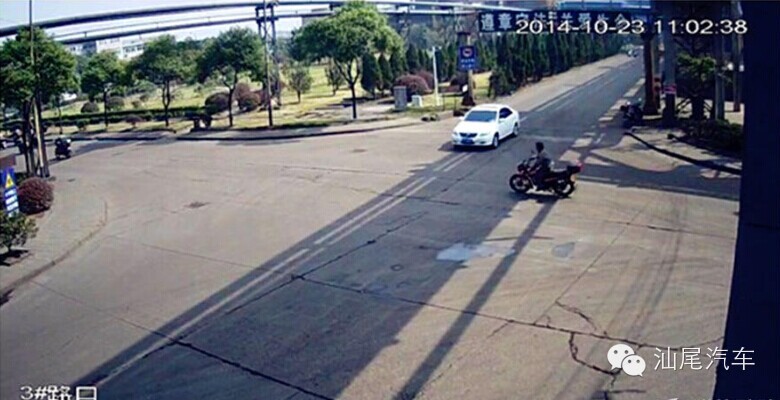 摩托车驾驶员全身30%深度烧伤,生命垂危,目前在重症监护室等待进一步观察。图为事发前轿车和摩托车即将相撞瞬间。