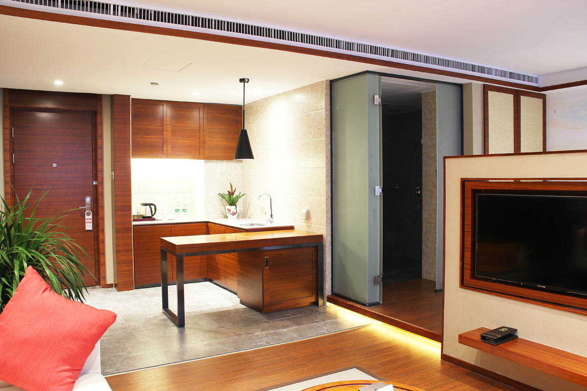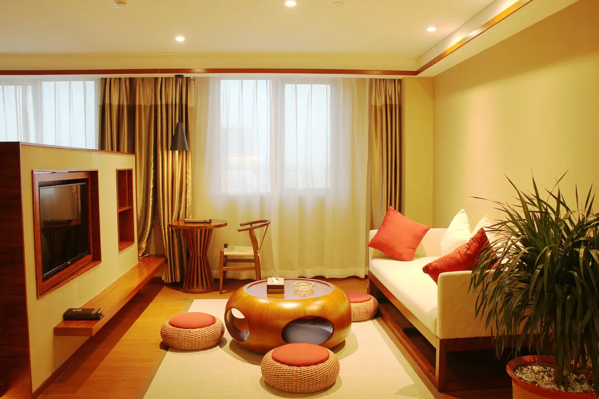 华仁阁(双人房,箭头所指房型实拍图 ↑)原价:688元,超低体验价: 170元!华仁殿(两房两厅,箭头所指房型实拍图↑)原价:1288元,超低体验价:788元! 华仁国际公馆系华仁黄金大厦文化主题酒店,位于四至八层。华仁国际公馆以“仁 义 礼 智 信”命名每层主题风格,设有单身公寓、一房一厅、两房两厅三种户型,以后现代中式设计手法,融汇中华传统文化理念,独创别具一格的文化意境,力求打造区域文化主题酒店,让入住的每一位客人都有一个优雅、舒适的环境,体验到家的感觉。 (酒店走廊) (豪华卫生间)