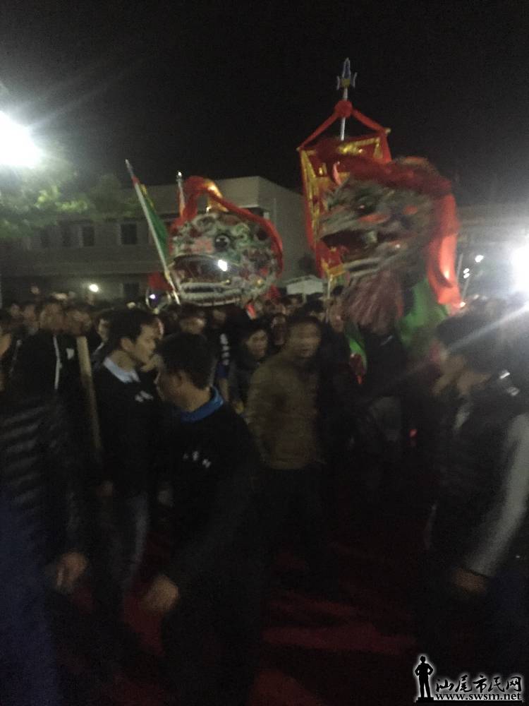 本月12日晚,梅陇南山罗村新兴馆瑞狮队到宗亲田寮村汇演、联欢,田寮村英艺馆瑞狮队特在梅陇农场地藏王佛祖前准备了隆重的迎接会狮礼节,田寮村上百名青年身穿统一服装护场,在大路中间开出一条会狮大道,全路段铺设红地毯。晚7时45分,南山罗村新兴馆瑞狮队缓缓进场,人潮拥挤,锣鼓喧天,烟花绽放,会狮开始,两村瑞狮此时都卧着慢慢相向而行,这是梅陇镇内唯独两只具有海丰特色又富有惠东风采的瑞麟,两狮相会,相亲相吻,场面十分壮观,热闹非凡。会狮礼毕,参拜地藏王佛祖后,两只瑞麟则一同前往田寮村公馆前汇演联欢。一路上嬉戏玩耍,还表演了富有特色的过桥观水,进门三进退等礼节,气氛十分喜庆,热闹,吸引了不少市民前来观看。 |