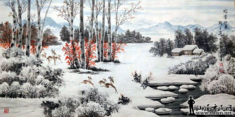 冰雪画家高伟:鹿淞堂主人,1967年生于黑龙江省哈尔滨市巴彦县。自幼爱好书画,师承冰雪画派名家~高凤德先生。传承了高凤德老师的冰雪白桦林和无骨写意梅花鹿的画法。 从冰雪画派创始人~于志学先生的绘画表现方法中,学习到了很多技巧,领会颇深,受益非浅。为了更好的表现冰雪效果,多次前往黑龙江省牡丹江市的中国雪乡,和吉林雾淞島采风。吸取了冰雪大家,名家的特长,在灌木雾淞,白桦林,无骨写意梅花鹿和雪地,冰层及远山的表现方法上,有了自己独道的见解和表现手法。自创了以冷色调为主的新风格冰雪山水画……青碧冰雪山水。 多次参加省,市,以及全国各地书画展。作品被全国各地收藏家及书画爱好者收藏。