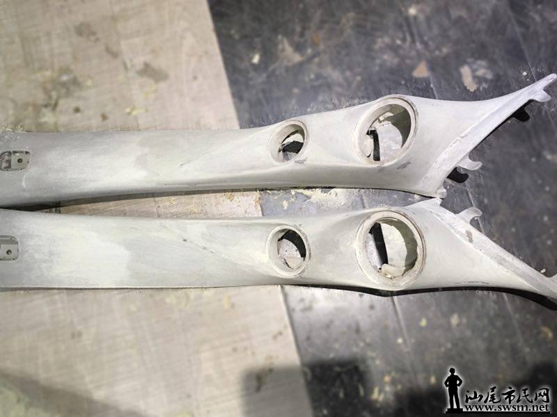 劲浪ES165KX3中音单元、高音单元在A柱进行倒模安装,提高声场,缩短聆听差距,A柱倒模完成效果图