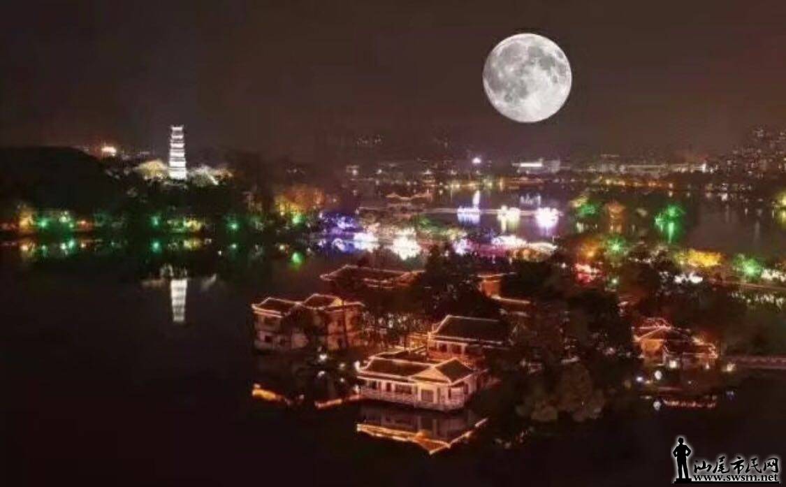 北岸高楼光闪闪,孤山塔影慢飞梁。