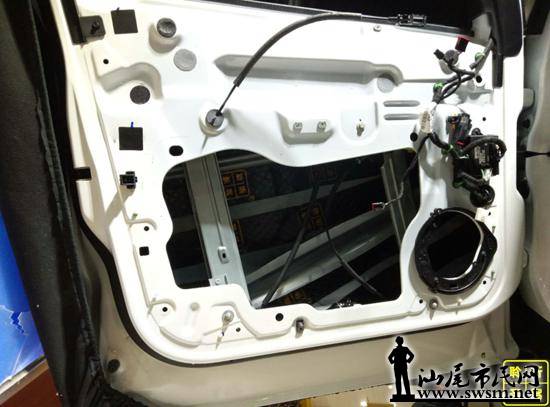 车门隔音做好接着就是安装中低音,前后声场中低音喇叭安装于前后门板原位处。