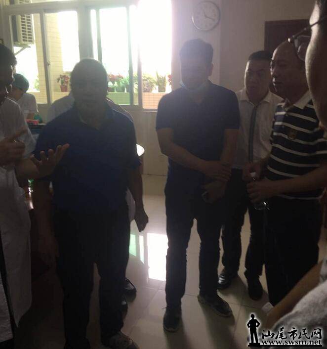 4月30日上午汕尾市卫计局领导、市人民医院院长、汕尾市富丽混凝土搅拌有限公司领导等对伤者家属介绍伤者情况、目前体征稳定,及富丽混凝土搅拌有限公司特聘广州医疗专家,到汕尾人民医院为伤者进行会诊治疗方案。