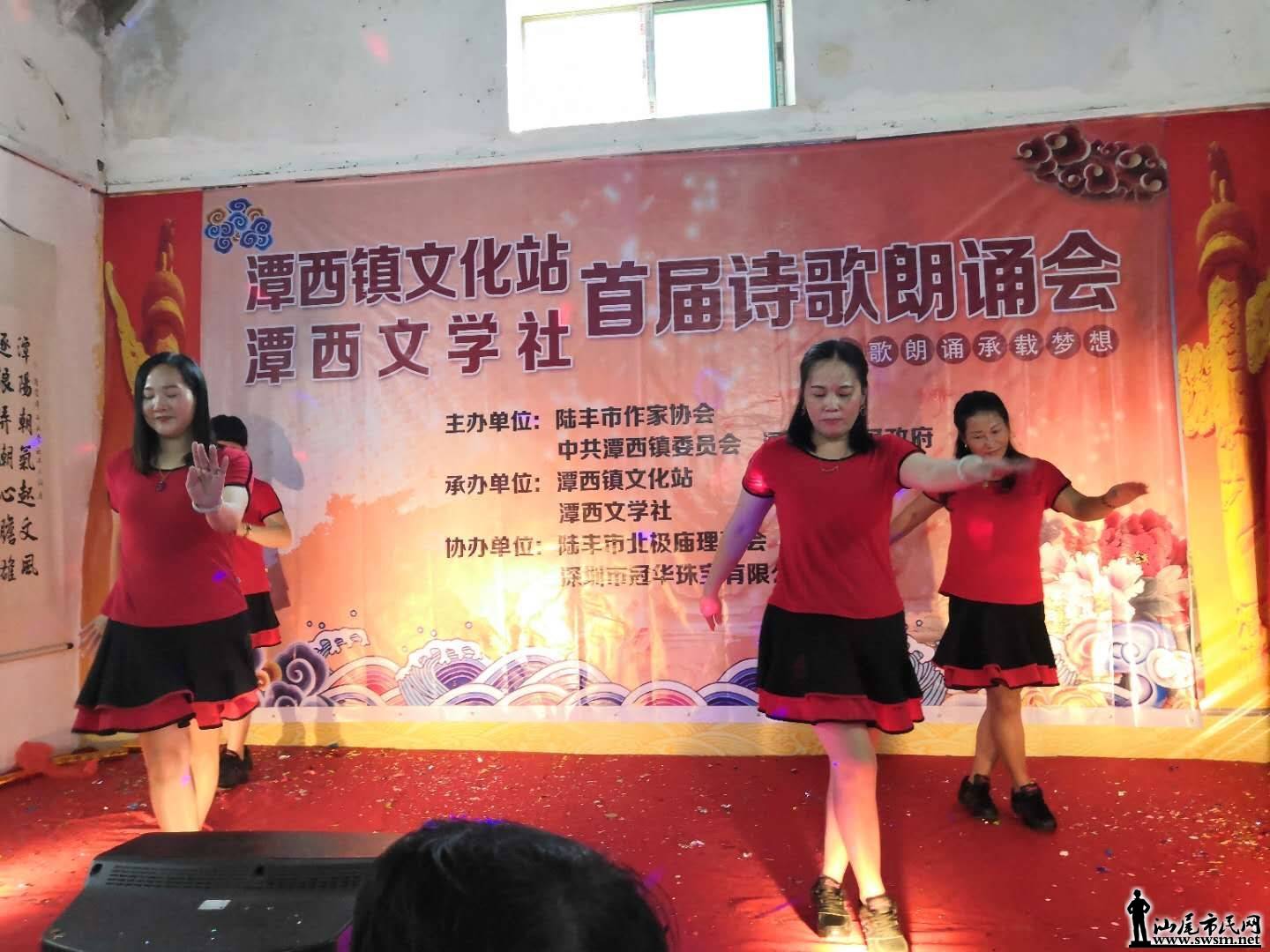 中午,潭西文化站与潭西文学社共同主办的首届“诗歌朗诵”正式开始。在诗歌朗诵选手登台前,“海陆丰红色山歌团”首先亮相,一首首红色山歌在弦乐的伴奏下,在潭西上空飞扬。听众被红歌带回到久远的激荡年代,会场气氛严肃而庄重,红歌首首沁人心脾,感染着所有听众。当歌声停下后,全场爆出热烈的掌声。