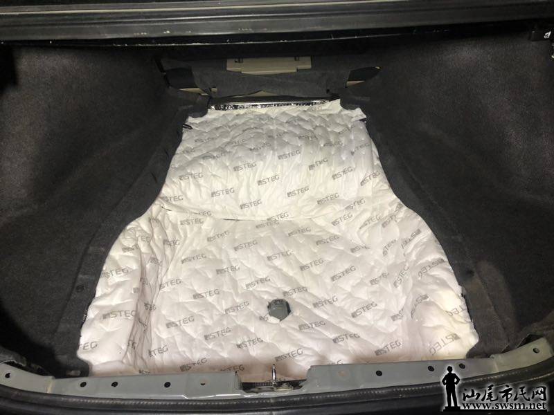 尾箱低频共鸣声,尾箱噪音解决方案: 1层山水减震材料、1层STEG史泰格S7吸音棉