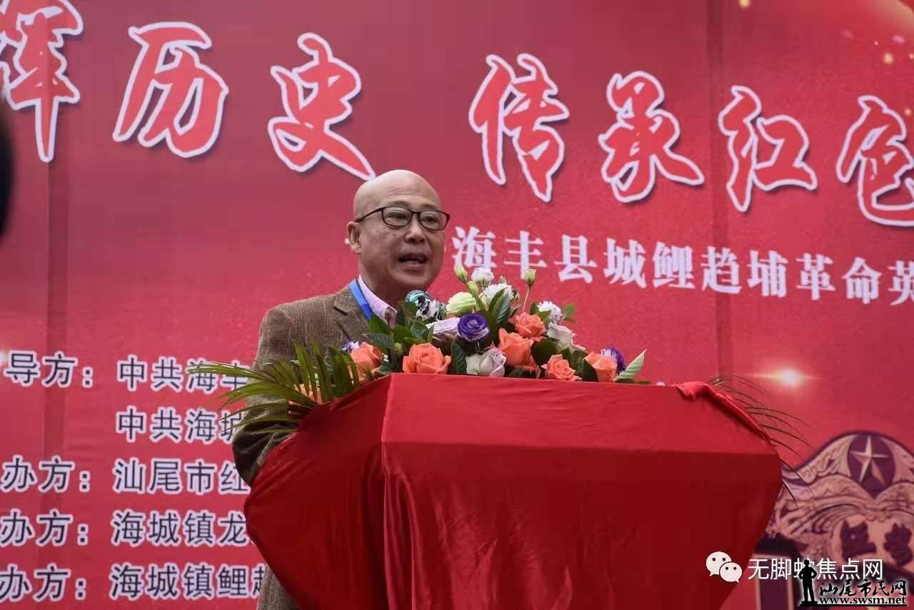 回首那些曾 经为建立新中国而前赴后继的革命英雄,我们感慨万千!为了更好地继承和弘扬他们的奋斗精神,我们在这里举办这次纪念大会, 并邀 请中共海 丰县委 宣传部,中共海城镇委, 海城镇政府为指导单位, 海城镇龙津社区为协办单位, “铭记光辉历史,传承红色基因---海城 镇鲤趋埔革命英烈纪念大会” 筹备组承办。 在广大乡贤和志愿者的努力工作 下, 使这次纪念大会能够顺利举行, 对他们的辛勤付出表示钦佩.时至今日我们虽然做了一些力所能及工作,但还很不够,还有许许多多红色革命历史有待深入挖掘。希望通过这次纪念大会,在座的专家、学者们能够把鲤趋埔英烈的革命事迹和丰富的红色文化挖掘出来, 宣传出去, 进一步提升鲤趋埔红色革命文化的知名度和影响力。进而弘扬社会正能量, 鼓励人民群众在党的领导下不忘初 心, 砥砺前行。 在新时代,按习总书记教导我 们的要利用好红色资源,发扬好红色传统, 传承好红色基因。 婴以为总书记视察广东重要讲话精神和淳淳教诲为契机,一丝不荷 假好各 项工作, 为海丰奋力当好汕尾建设沿海经济带靓丽明珠排头兵而努力!