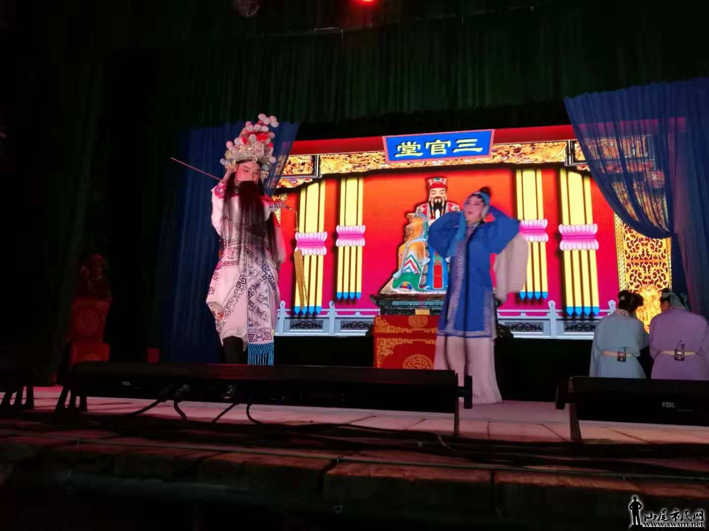 随着过场幕,以韩琦娴熟的演艺技巧,与扮演秦香莲马四香名全心力投入《杀庙》的激情演出。他以坚强毅力克服了赶时间疲于奔命的喘息,以唱腔洪亮圆润浑厚有力,从令杀、放杀到自杀。一系列剧情动态产生面部眼神表情转动动作行动静分明,刚柔相济,悍义转换流畅自然,优美洒脱一气呵成,令人叫绝。