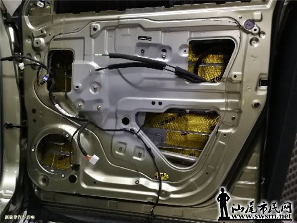 车门位置做标准的双层隔音,先在车门里层贴装一层隔音材料