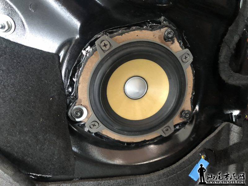 法国劲浪ES 100K的中音单元安装,在车门板上的原车喇叭位置对位安装,音频线材焊接处理,细节方面汕头星悦汽车音响店的改装师傅,有着非常良好的把控。