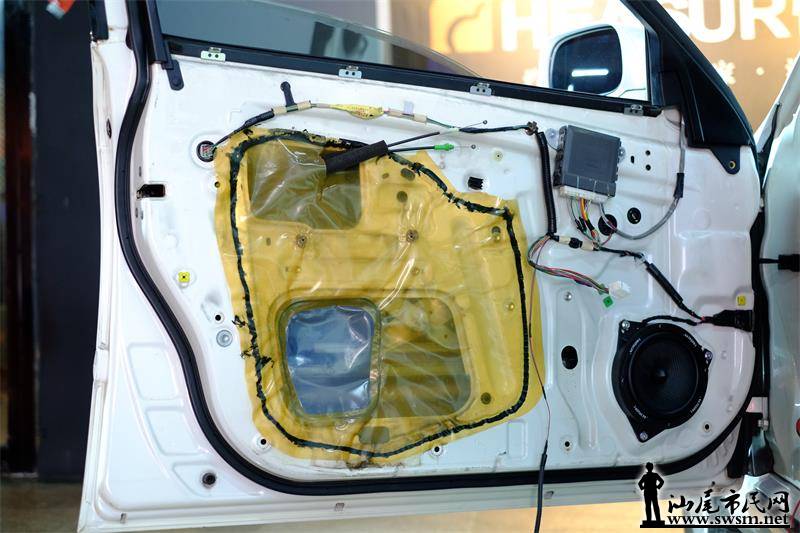 后门升级德国艾索特同轴喇叭,原车后门没有高音位,升级艾索特A165同轴是个不错的选择,此同轴解析力强,同步音频信号,性价比极高,可以满足后排乘客的听歌要求