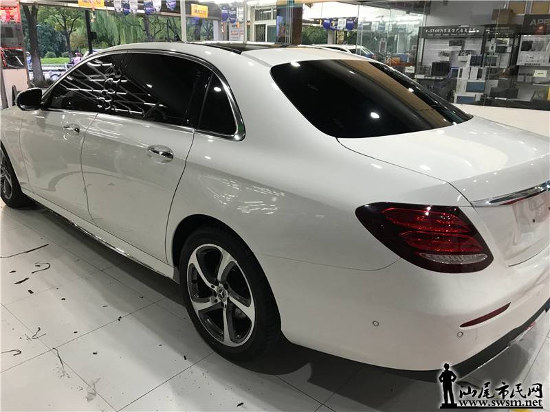 [汽车改装] 杭州奔驰E300L漆面改色膜,全车超亮金属钛灰漆面改色贴膜施工