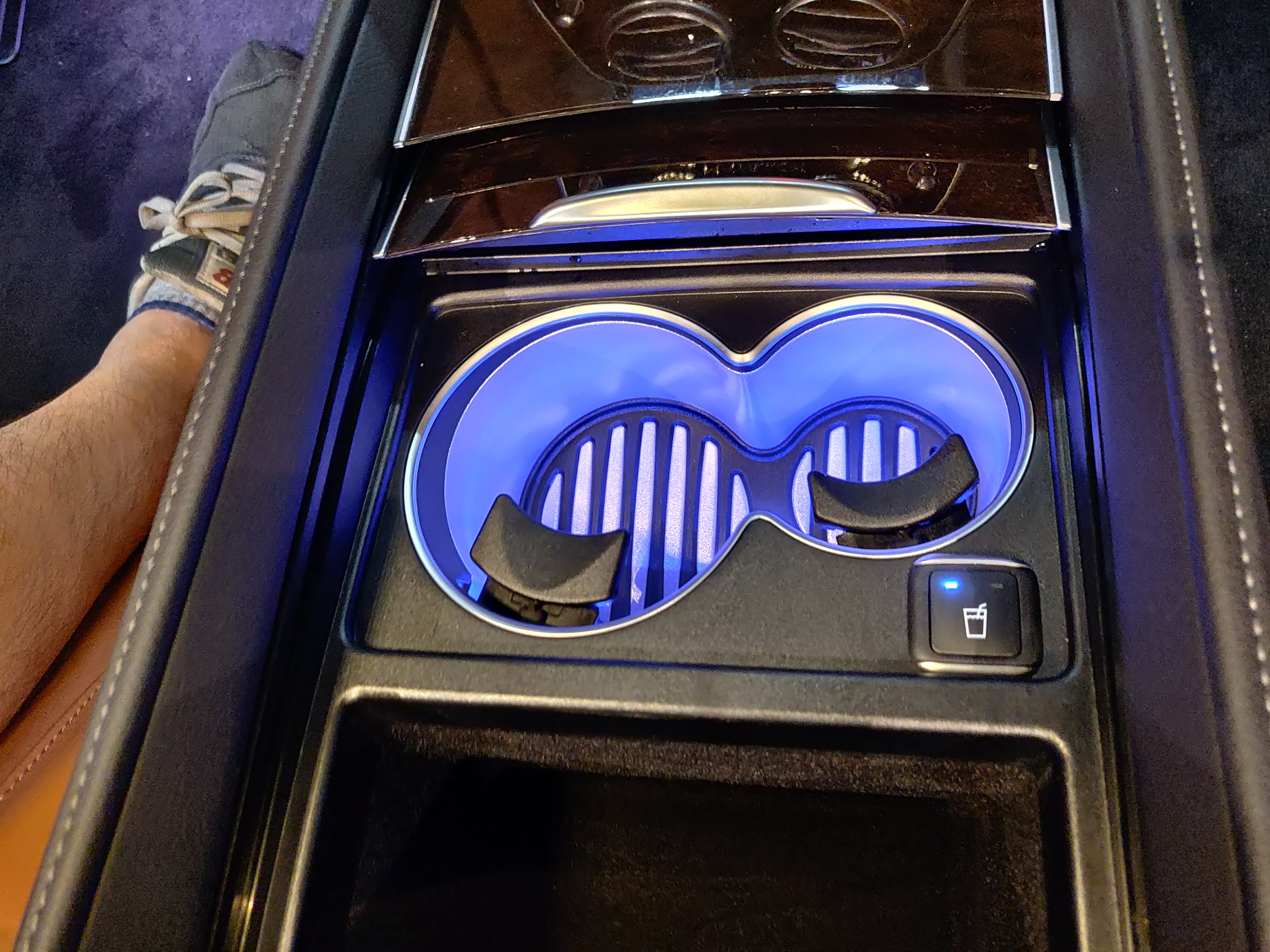 冷热杯架可以制冷和加热,能够让你在炎热的夏天喝到冷饮也能让你在寒冷的冬天保温!杯架会亮起氛围灯,让内饰增添了高级新鲜感!