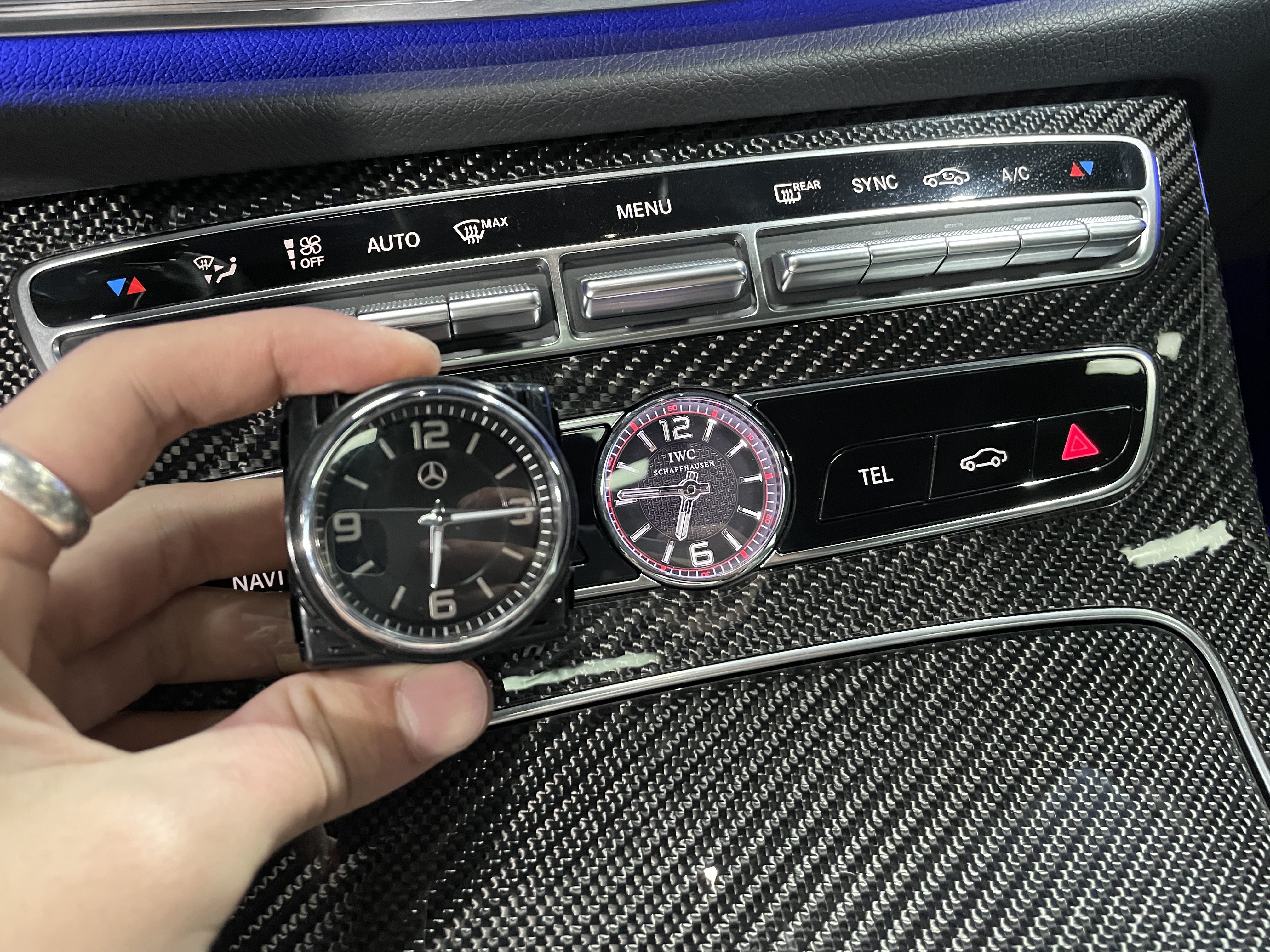 中央扶手上的万国表就不用多去介绍了,大家看我手中拿起原车的万国表来对比就非常明显,红圈是代表更加运动的一个版本!