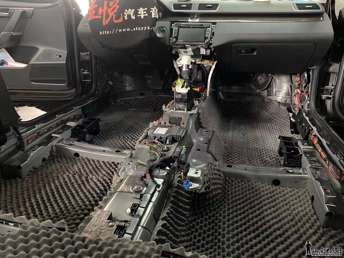 接下来看看坐舱底板隔音处理,它有效阻隔路噪和底盘共鸣噪音 这是大众迈腾原车底板构造,把钣金清洁干净,准备进行山水汽车隔音降噪处理针对坐舱底板的钣金进行止振处理,抑制钣金共振噪音、底盘路噪、共鸣噪音和排气管噪音,从而使得大众迈腾更加安静舒适。