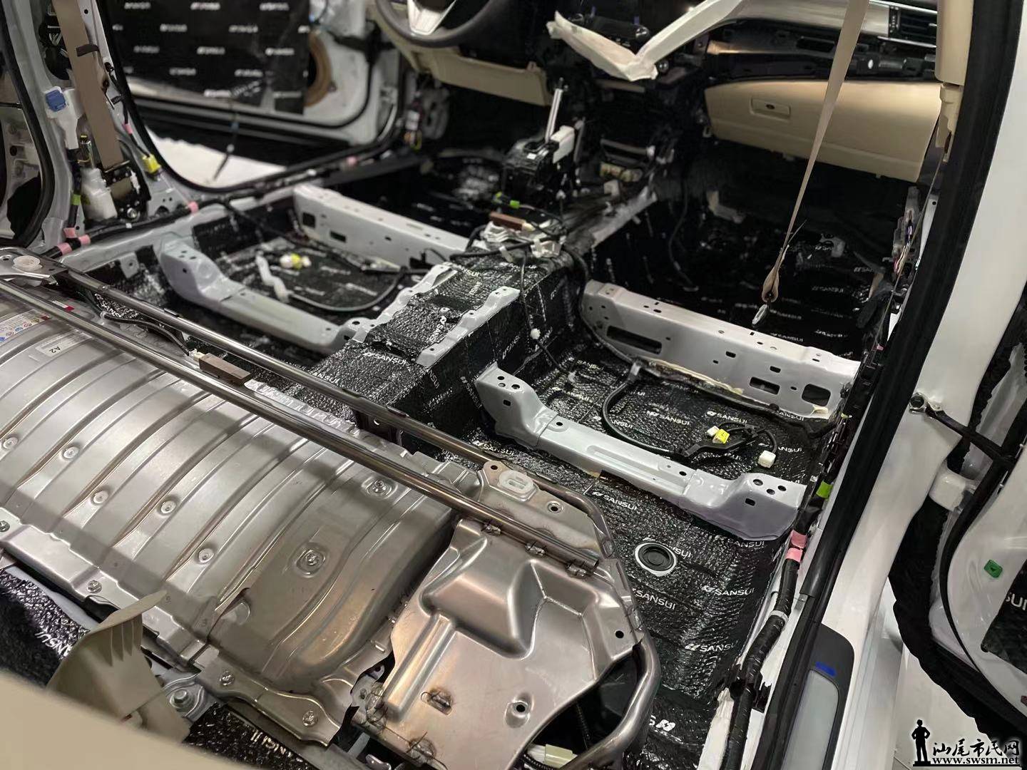 底盘止振处理之后,粘贴一层山水波浪棉,双层隔音之后底盘噪音得到高效控制。