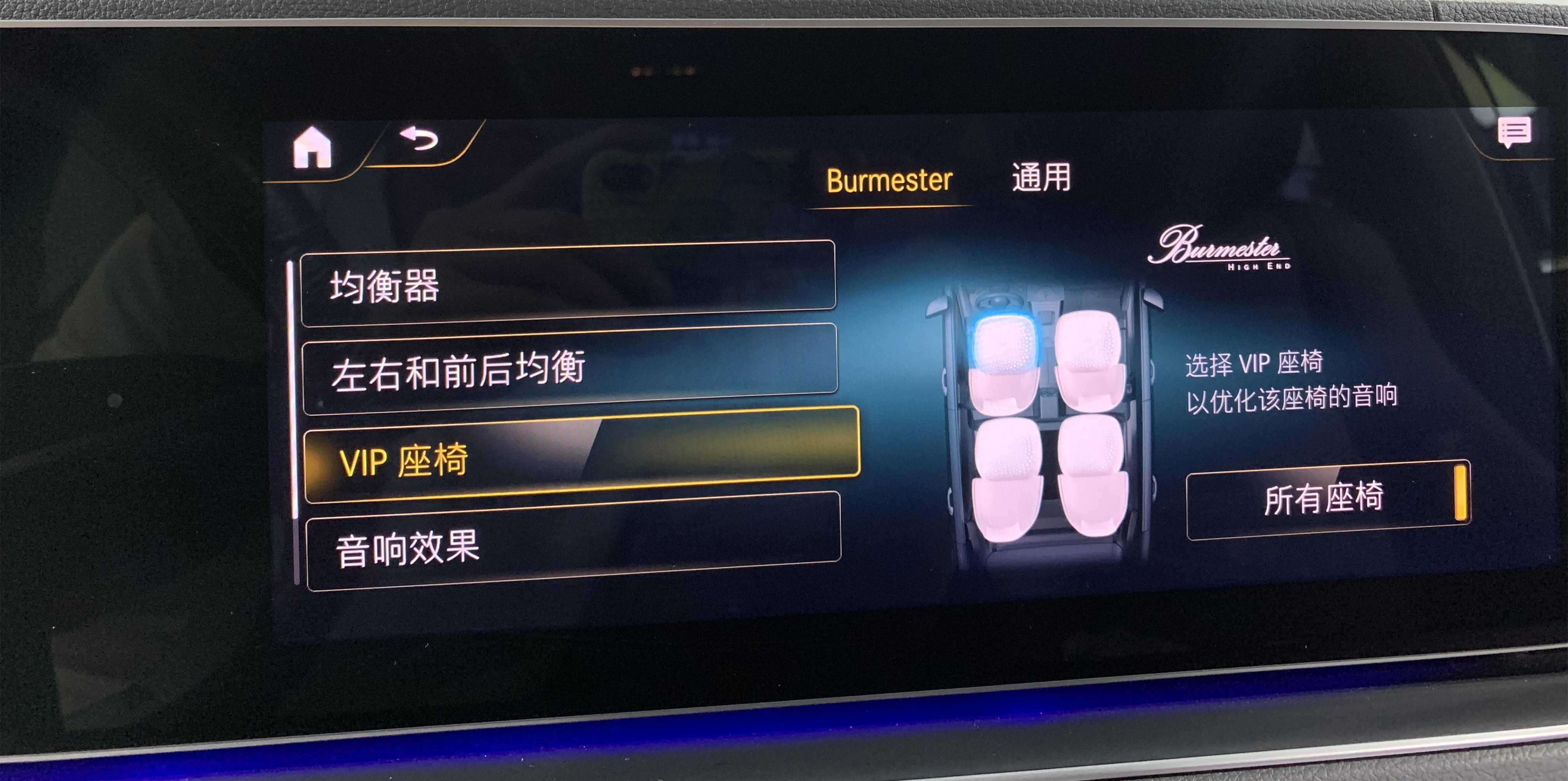 在顶棚当中有三个边缘含有氛围灯的顶棚高音饰板,大柏林之声音响不仅仅是给到听觉上的享受,更是在视觉方面做出来点缀,更随着车内的氛围灯为您舒缓疲劳!