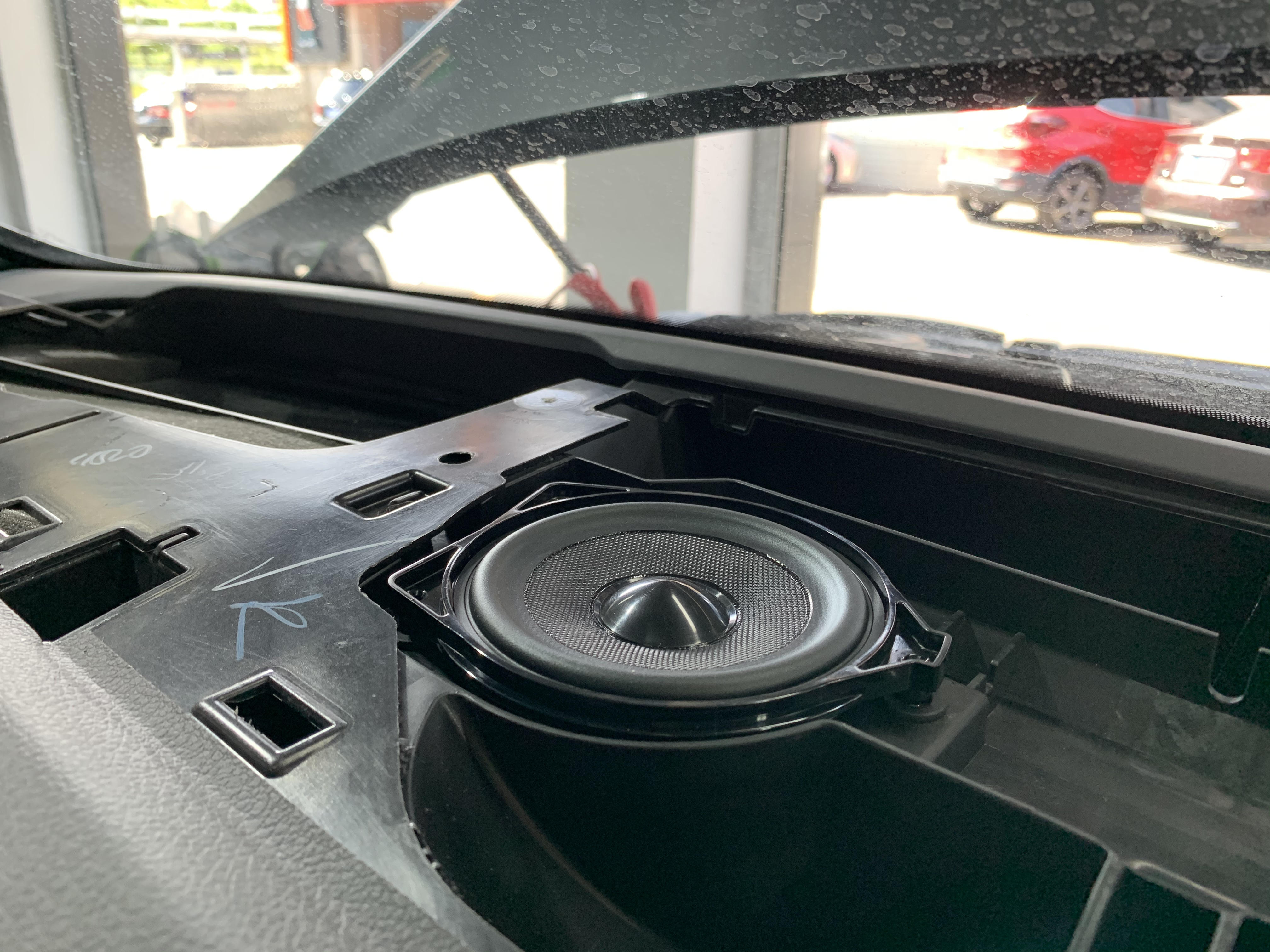 前排上方的眼镜盒位置替换成为了大柏林的顶棚高音喇叭,一个饰板当中含有2个高音扬声器,而仪表台当中含有一个中置中音和一个中置高音!