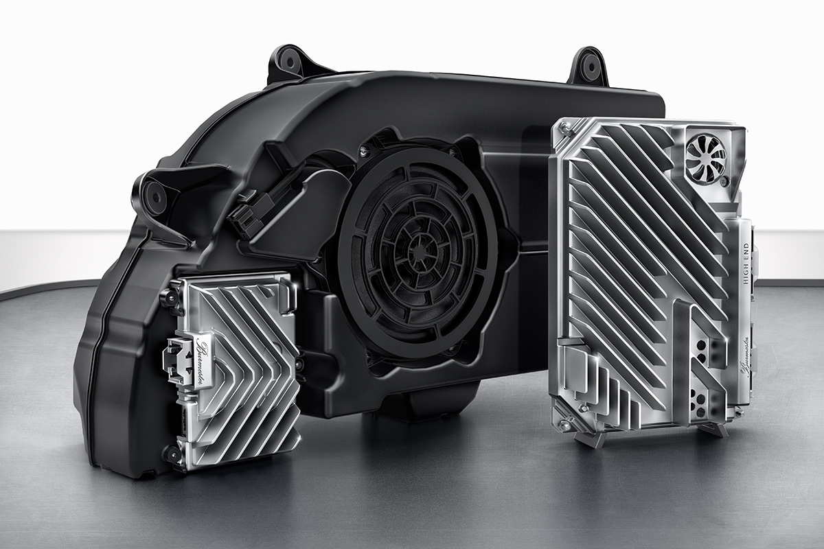 新的旋转高音设计还是根据老款的灵感,这一代更加凸显立体棱角和线条感,看上去更加美观,全车四个门板每个门板上都有中高低音三个扬声器,其中前门的旋转高音头在工作时会向前伸展10毫米,通过螺旋式的伸张来抵消高音产生的空气震动从而使得声音通透纯粹。
