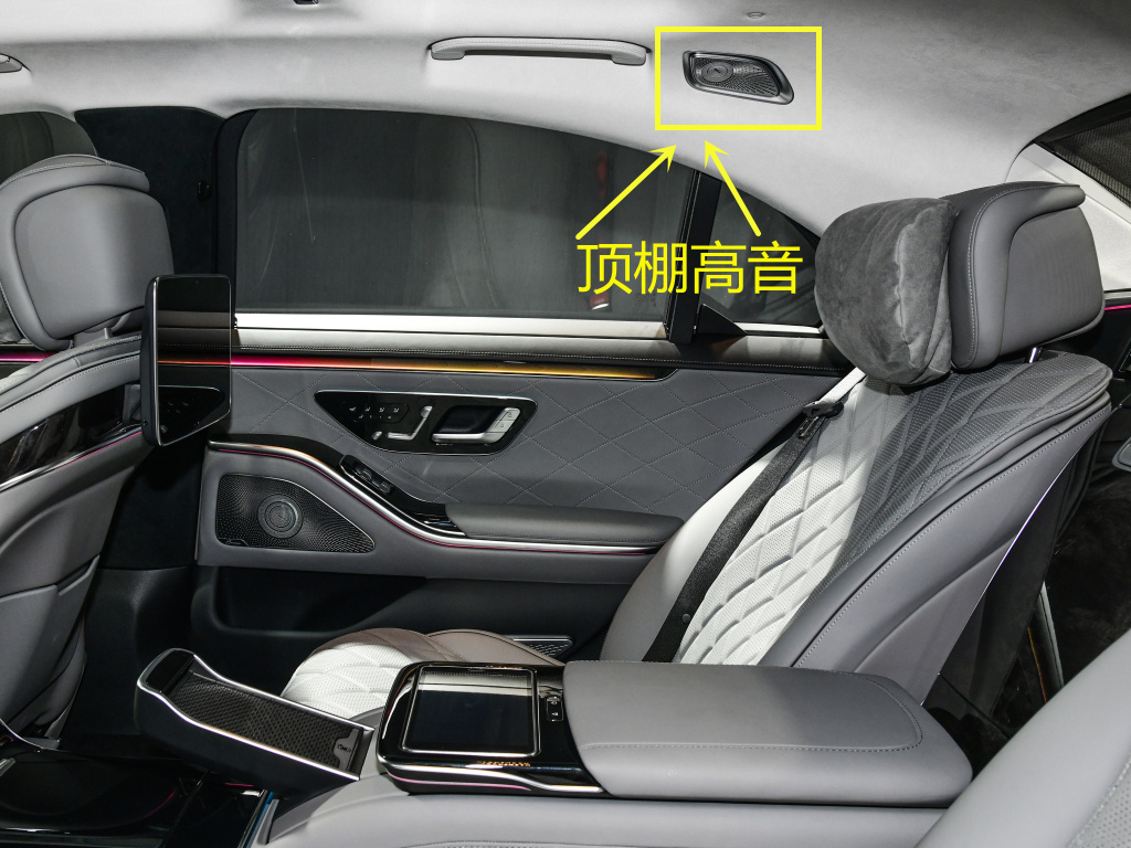 在后门中,高音和中音安装位置相邻,如果是迈巴赫系列,这个地方就是更换成了旋转高音,所以很多奔驰S级在理解中有一个误区就是误认为后门是有旋转高音的。如果这一代奔驰S级想要在后门加装旋转高音,理论逻辑上是可行的,但是也需要新技术的沉淀!