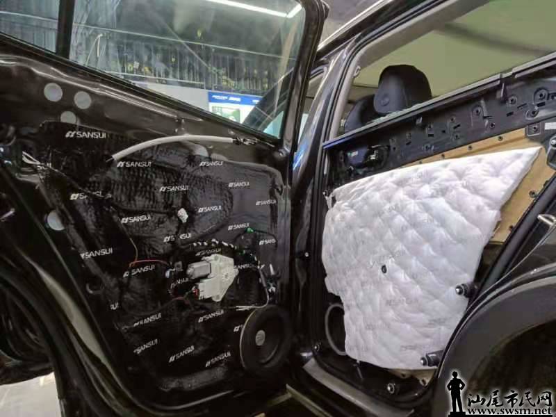 门板汽车隔音降噪第二层,外层满贴山水减震板,形成密闭的箱体空间,有利于音响效果的发挥,也可以更好的抑制门板间的共振。