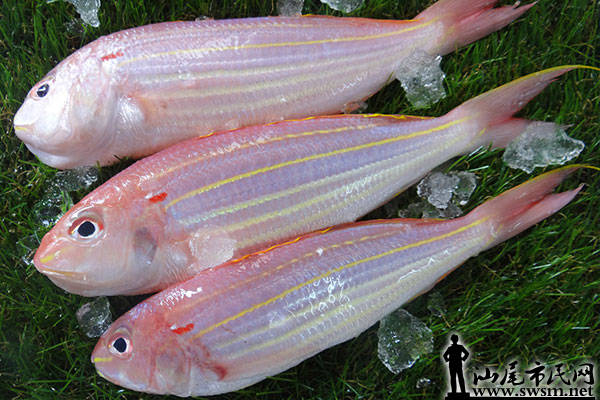 话说红哥鲤鱼 红哥鲤鱼学名红杉鱼,俗名:红三鱼、红哥鲤、吊三鱼、拖三鱼、瓜三鱼、黄肚鱼金线、金线鲤,六齿金线鱼。是一种南海沿岸地区常见的海洋经济鱼类。 红哥鲤鱼体长而侧扁,背缘、腹缘粗壮,钝圆。一般体长19-31厘米、体重100-500克。眼大,唇厚、吻钝尖,口稍倾斜,头前无鳞。前腮盖骨被三行斜排的鳞片。胸鳍尖长。尾鳍分叉,尾鳍上叶不延长为丝状。体侧有二条浅蓝色纵带和5-6条淡黄色纵带。背鳍红色,有黄色边缘。臀鳍白色,中间有一黄色条纹。尾鳍红色,上叶尖部黄色。这是我国广东、广西、海南、台湾等省近海底拖网渔业捕捞的经济鱼类。