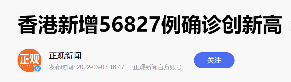 香港疫情破防了。 截至3月3日当天零时,香港新增56827例新冠肺炎确诊病例,再创单日新增数字新高,其中56825例为本地病例。 目前为止,本轮疫情累计337926人感染。