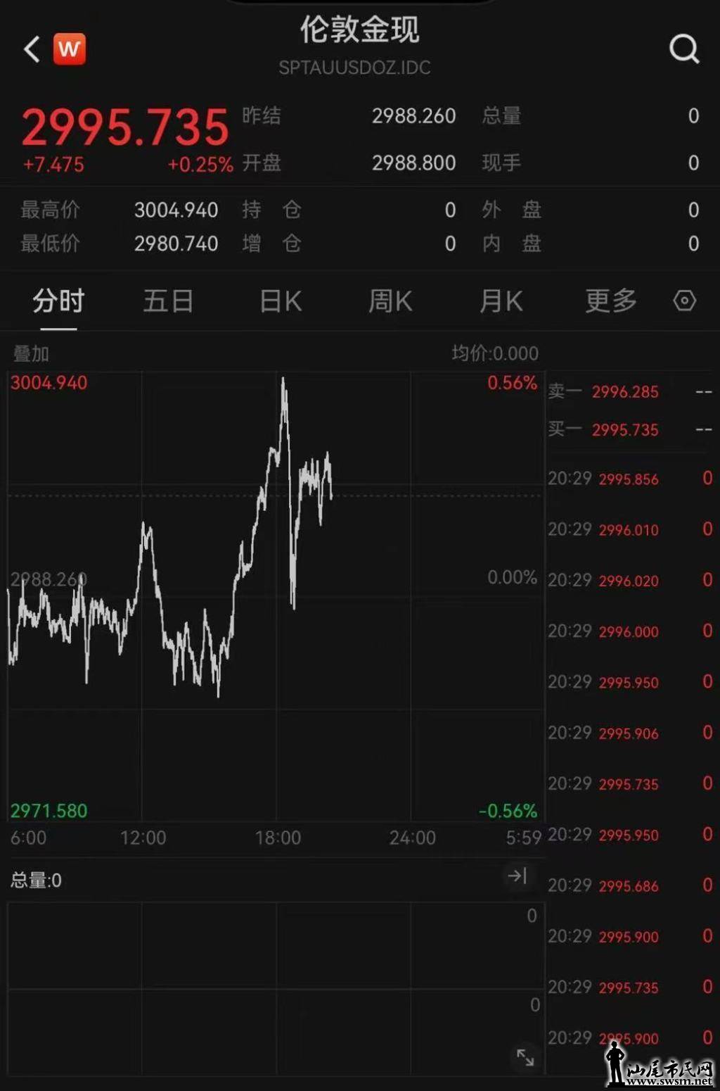 现货黄金价格突破3000美元关口。 3月14日,继COMEX黄金期货大涨超3000美元/盎司后,现货黄金价格也首次上涨至3000美元/盎司上方,年初至今累涨超370美元/盎司,涨幅超14%。随后在高位震荡,截至发稿,现货黄金价格回落至3000美元/盎司下方,报2995.73美元/盎司。