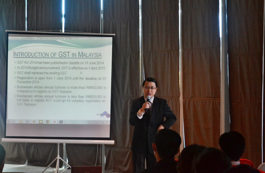 除了庙会节的活动,碧桂园金海湾特别邀请专业税务顾问Sir Loo Nic Kee到现场给客户主讲“大马消费税(GST)研讨会”。