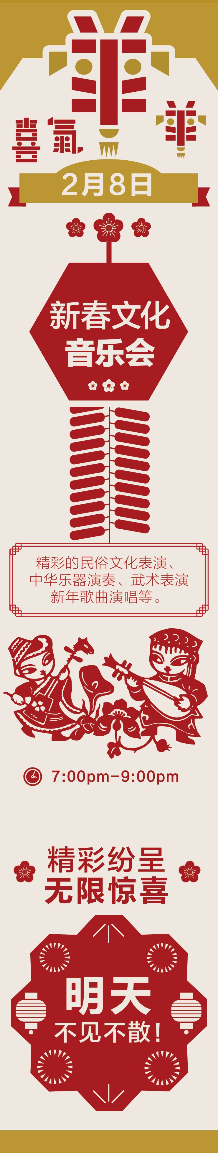 如果您错过了今天的研讨会,别担心,明天下午2点至5点还有一场哦!到时就别错过了!还有还有,明天也即将引来最后一天的“新春文化庙会节”,从早上10时开始,全天活动连连!最重要的是,晚上7时,“新春文化音乐会”震撼来袭,现场将呈现中华传统表演、乐器演奏、现场乐队演唱、中华武术表演等等,精彩纷呈,无限惊喜,还等什么?