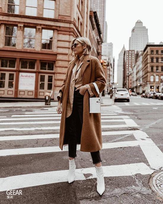 Ankle boots是秋冬季必备的鞋款,黑色踝靴更是百搭又不过时的款式,充满成熟稳重的气质! 3.Oversized 外套