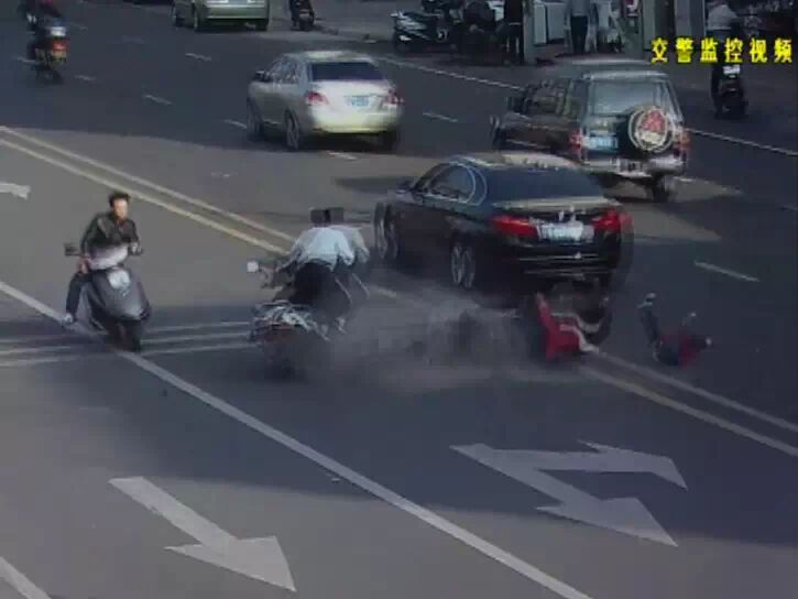 从我局交警提供的现场高清监控视频画面可以清晰看到,当时一辆二轮电动车正从城东方向往海城方向缓缓开来,正行至路中间时,由钟某(男,17岁,在校学生)驾驶的一辆无牌证二轮摩托车疑似超车,高速从老车头方向往城东红车大道方向开来,结果与对面的二轮电动车发生严重碰撞,从而导致两车损坏,其中二轮电动车驾驶员蔡某重伤,并送医院紧急抢救。