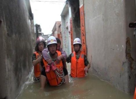 现场救援图 ?  22日6时起,汕尾支队城区大队接到先后接到7次报警:城区盐町头、盐仕村、和顺村、铺边赤岭新业搅拌厂附近等多个地方,发生洪涝灾害,多人被困,城区大队出动3支突击队 3小时内抢救被困人员50人,疏散转移群众250余人。记者洪继宇 通讯员王晓怀摄