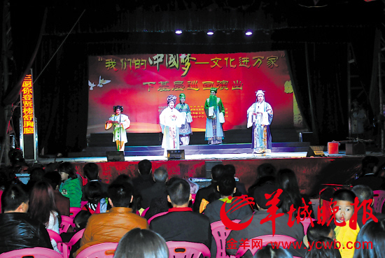 羊城晚报讯 记者王漫琪,通讯员林若川、谢坂升摄影报道:大年初五晚上,陆丰市东海镇妈祖文化广场锣鼓声声、乐韵悠扬,陆丰市正字戏传承保护中心艺术家们带着精心打造的精品剧《刘文龙》送戏下基层,在广场简易的舞台上连续两晚免费演出,让广大基层群众近距离感受国家级非物质文化遗产正字戏的艺术魅力。该演出是陆丰市“我们的中国梦——文化进万家”下基层巡回演出的首场表演,随后还将在全市各乡镇巡回演出6场。