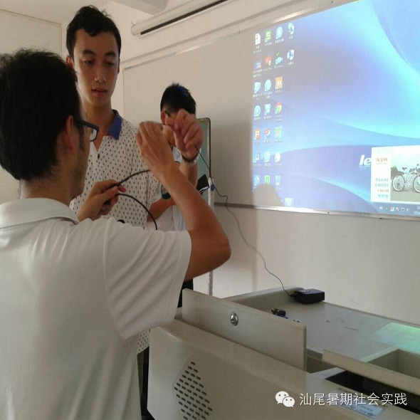 紧接着我们在镇党委工作人员的带领下来到博美中心小学,在校长办公室分队成员与校长及其他学校领导老师,召开了一个简短的座谈会后就本次活动相关交接配合事项深入交流,最后由教导主任林少绕老师带领我们参观学校,并向我们移交了本次支教活动的活动场地及相关设备。在林主任的指导下队员们对学校的教学设备进行检查、试用,确保支教活动的顺利进行。