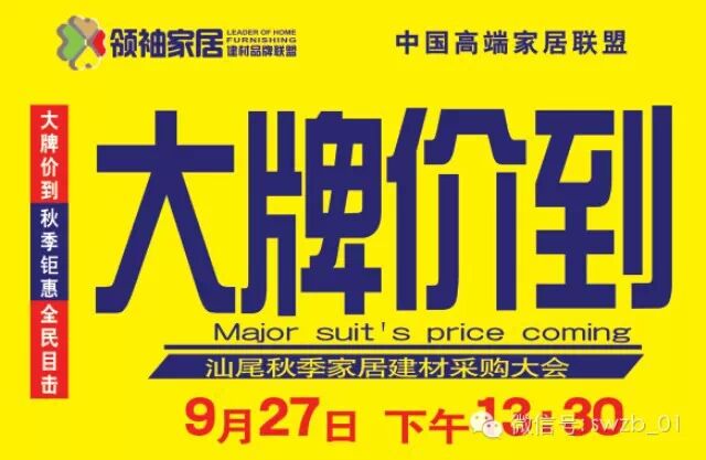 好消息!好消息!由汕尾市领袖家居建材品牌联盟主办,苏宁电器、汕尾碧桂园、星艺装饰协办的汕尾秋季家建材采购大会于 2014年9月27日下午1:30分在巴黎半岛酒店隆重举行!