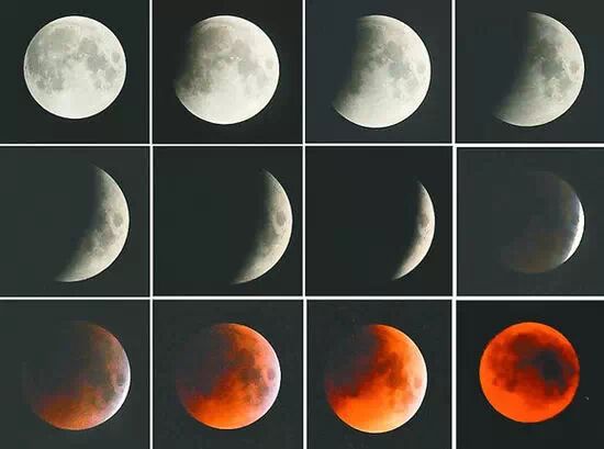 据介绍:月食分为半影月食、月偏食和月全食三种。地球阴影的中间部分称为本影,本影周围是半影。月亮进入地球半影发生半影月食,月亮一部分进入地球本影发生月偏食,月亮全部进入地球本影则发生月全食。在这3种月食中,月全食最为壮观,呈现暗淡而美丽的古铜色或微红色,也就是大家所称的“红月亮”。