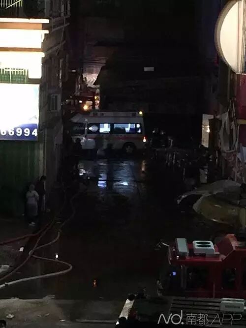 疲惫不堪的消防员。一名消防队员向南都记者表示,这样的大火通宵灭火很正常。