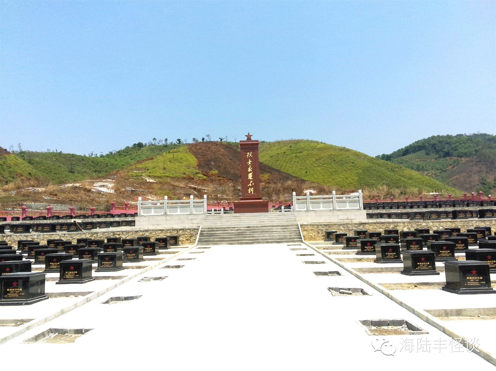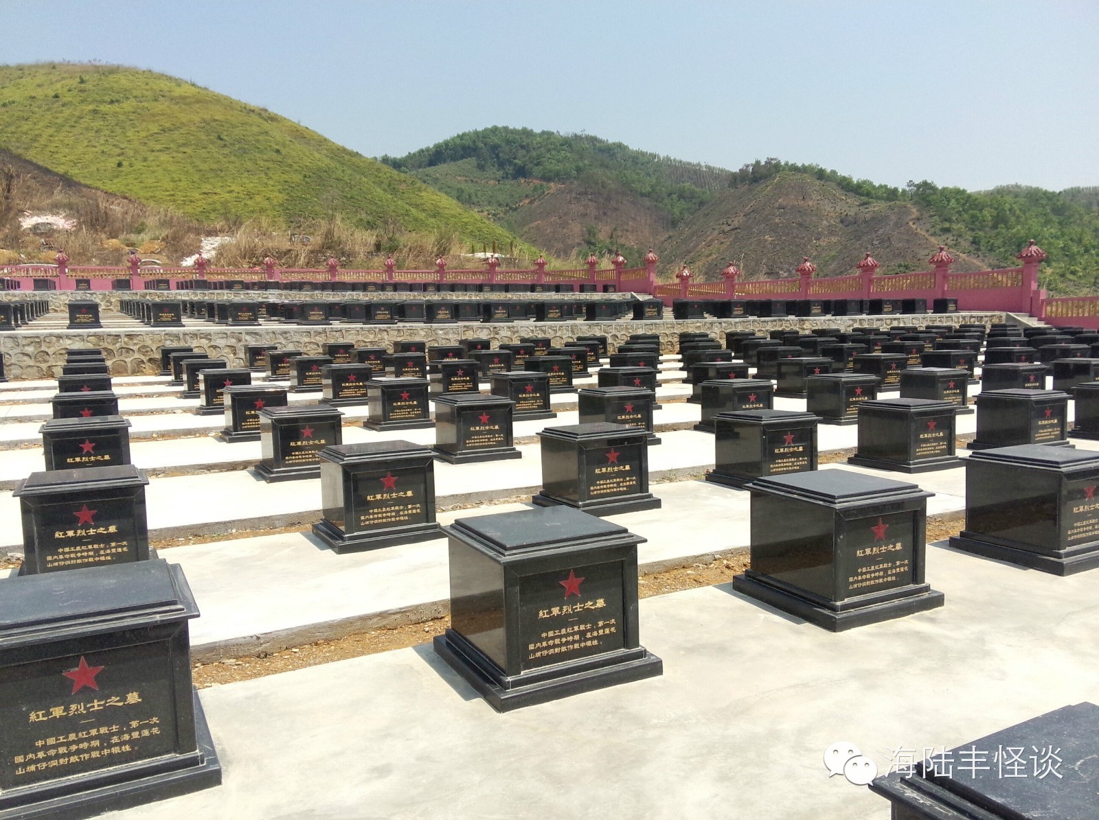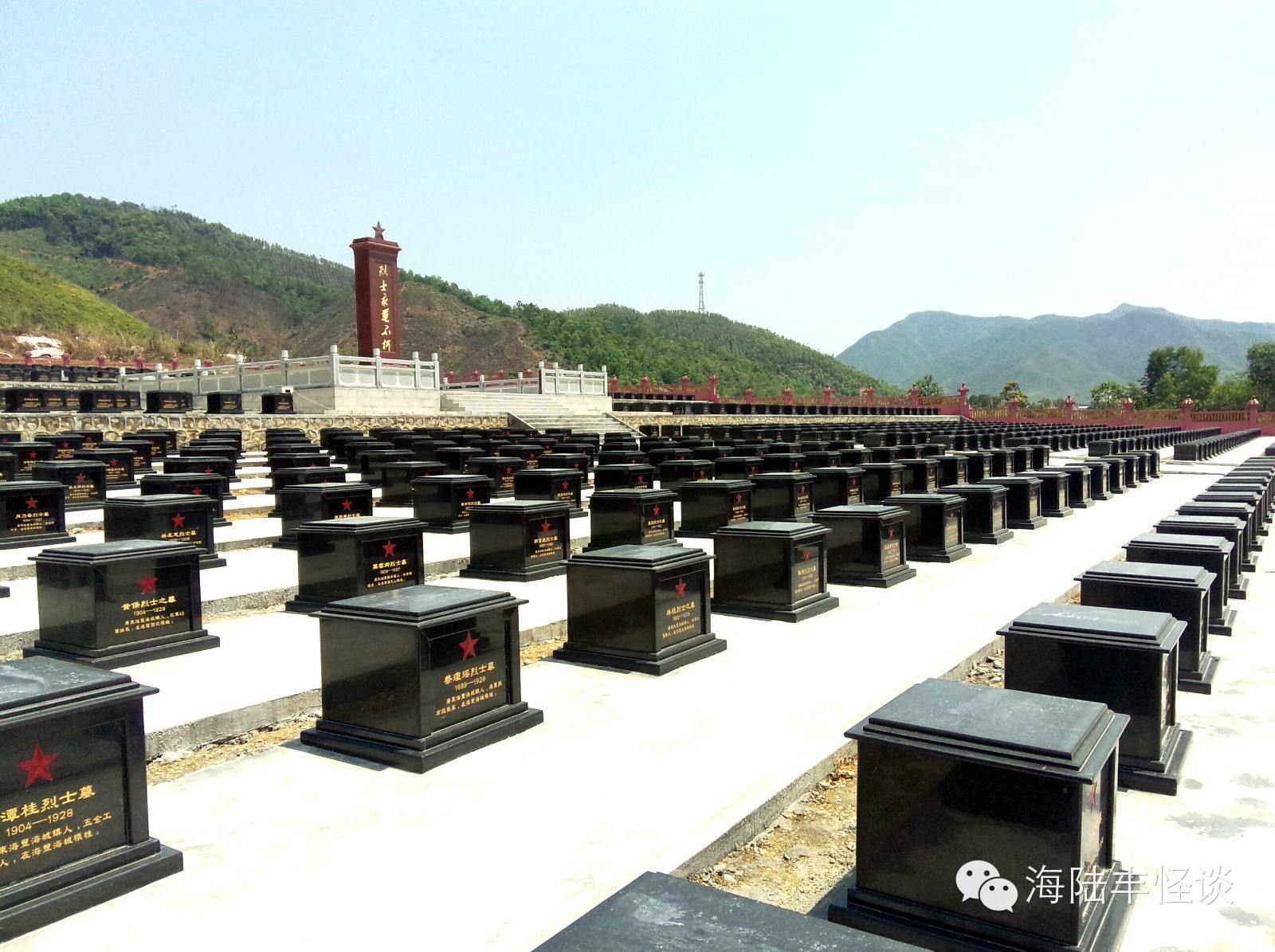 今天小编踏进莲花山红军烈士陵园,一股正气便扑面而来,当小编瞻仰着烈士们一座座纪念碑的时候,当小编细看着先英烈们的名字的时候,内心感到非常激动和震撼。站在烈士纪念碑前,我感到心潮起伏,感慨万千。烈士们全部都来自海丰,他们有的还很年轻,当年为了建立新中国,为了四万万同胞,为了把侵略者赶出中国,他们抛去一切,把宝贵的生命献给了祖国,小编站在英烈们前感到自己和英雄比起来非常的渺小。革命烈士永垂不朽,他们以自己的生命书写了祖国山河的壮丽,用自己的鲜血换回来中国的繁荣与稳定。英烈们用生命和鲜血换来了现在我们的幸福生活。我们要以先烈为榜样,发扬革命传统,继承英雄业绩,个人利益服从国家和集体利益,为家乡的建设、为祖国的繁荣富强而努力学习,共创美好明天。