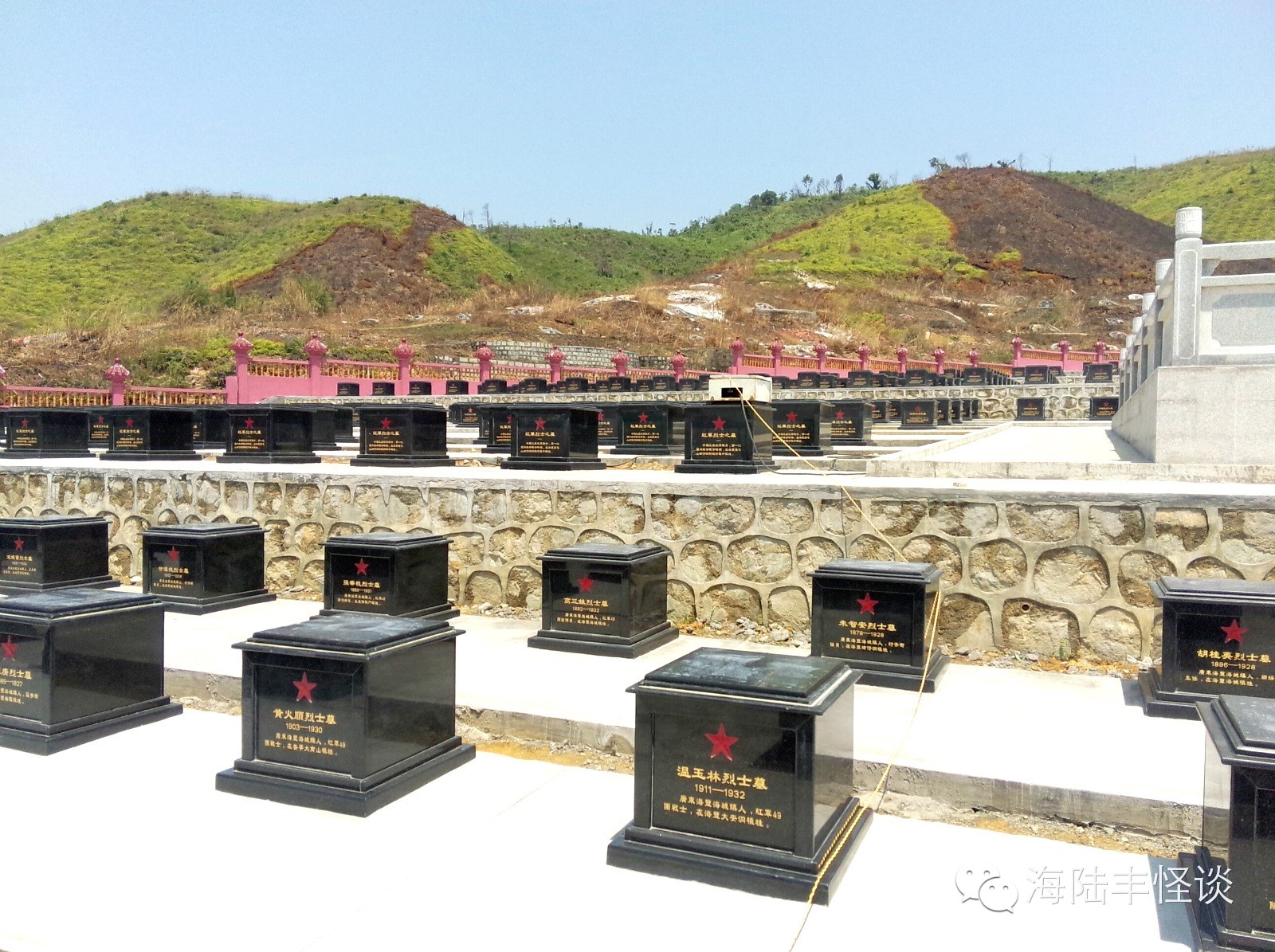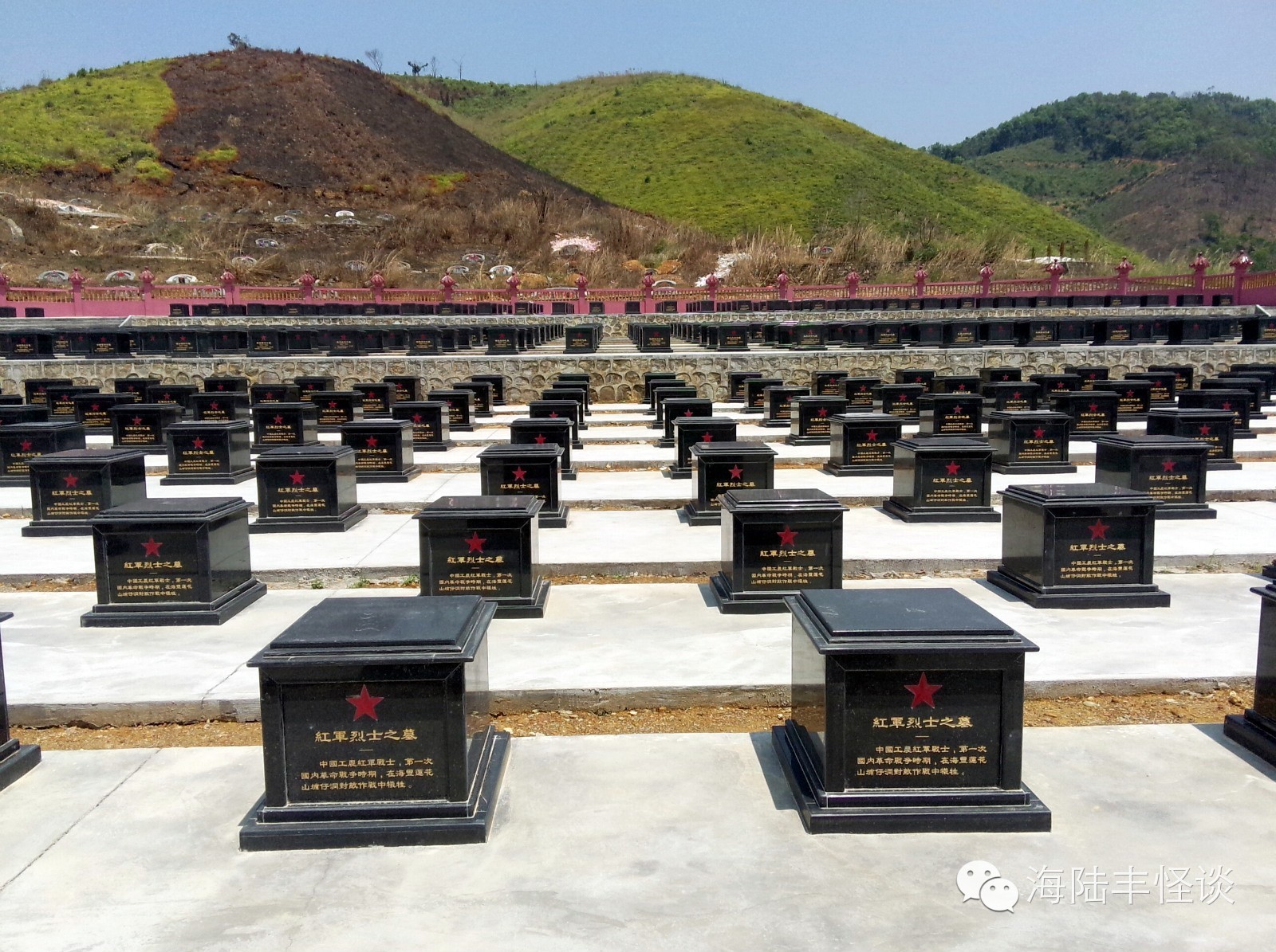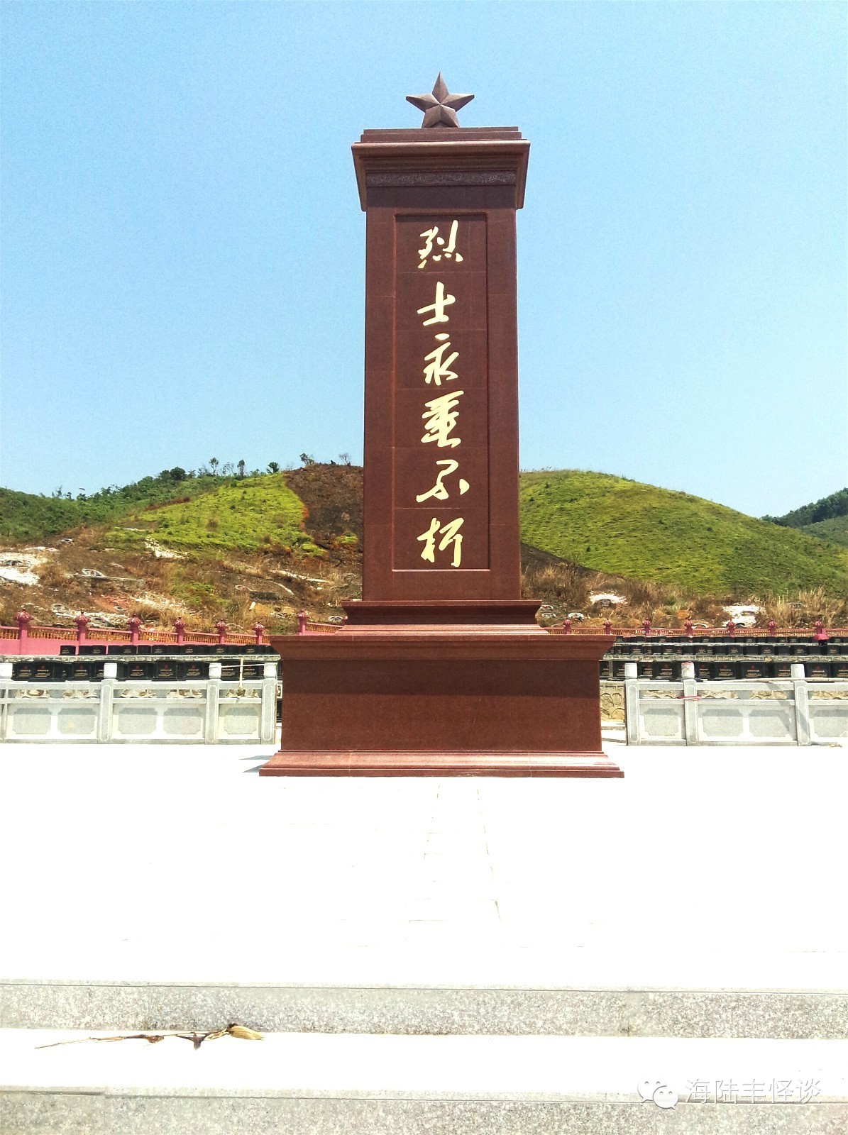 今天小编踏进莲花山红军烈士陵园,一股正气便扑面而来,当小编瞻仰着烈士们一座座纪念碑的时候,当小编细看着先英烈们的名字的时候,内心感到非常激动和震撼。站在烈士纪念碑前,我感到心潮起伏,感慨万千。烈士们全部都来自海丰,他们有的还很年轻,当年为了建立新中国,为了四万万同胞,为了把侵略者赶出中国,他们抛去一切,把宝贵的生命献给了祖国,小编站在英烈们前感到自己和英雄比起来非常的渺小。革命烈士永垂不朽,他们以自己的生命书写了祖国山河的壮丽,用自己的鲜血换回来中国的繁荣与稳定。英烈们用生命和鲜血换来了现在我们的幸福生活。我们要以先烈为榜样,发扬革命传统,继承英雄业绩,个人利益服从国家和集体利益,为家乡的建设、为祖国的繁荣富强而努力学习,共创美好明天。