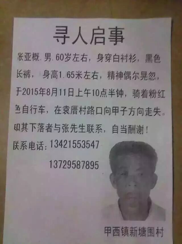[陆丰] 这位陆丰甲西老人 . 已走失5天了 . 家人现在心急如焚,请大家帮忙寻找,传递正能量。