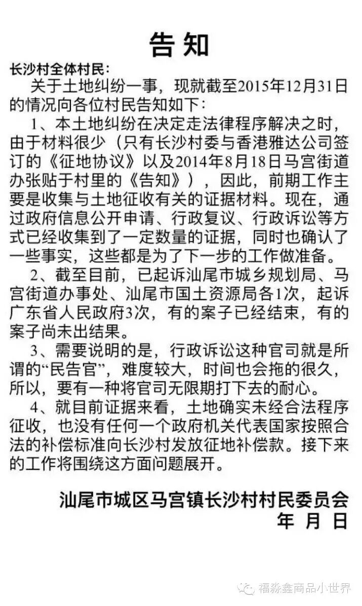 汕尾市马宫镇长沙村土地非法征收,资金去向不明,村民集体维权告政府!2016-04-26 福淼鑫 [url=]福淼鑫商品小世界[/url]