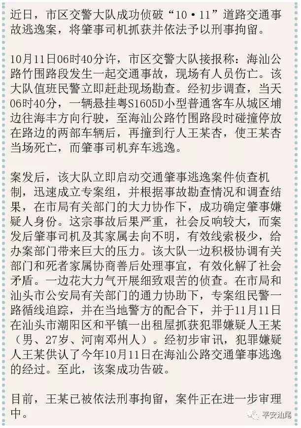 [城区] 城区 这宗交通事故逃逸案 已抓住…