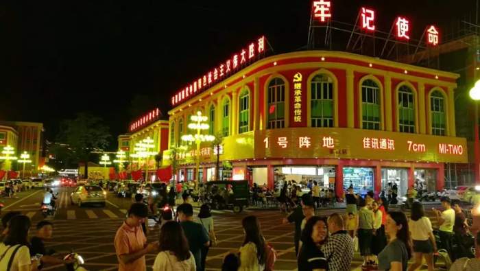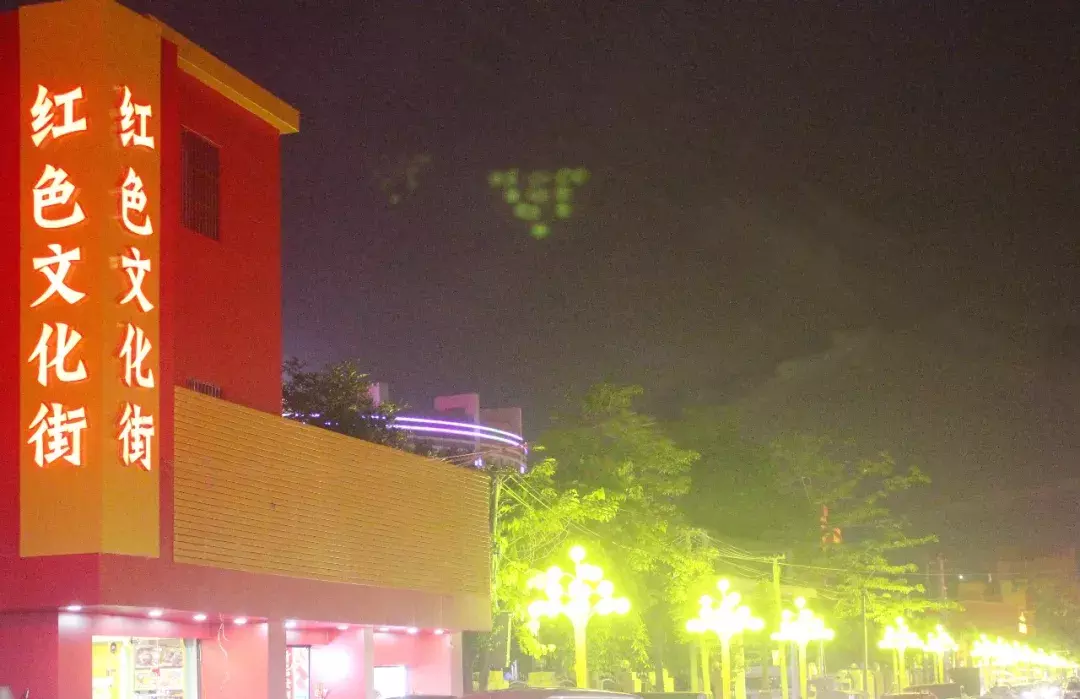 华灯初上,红色文化街广场成了人们休闲娱乐的好去处,喜欢夜拍的人多了起来,随处可见拿着手机或相机的人们徜徉其中。为了拍出文化街特有的韵味,有的游客还用上无人飞机进行航拍。