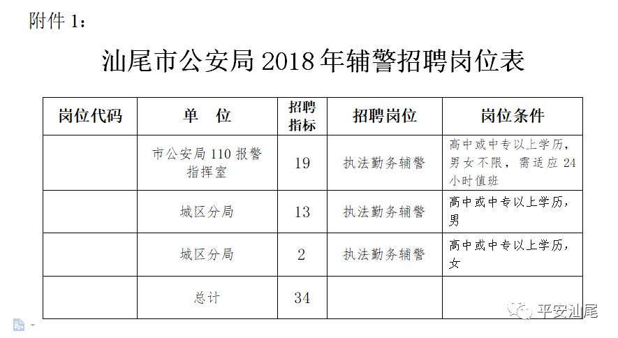 附件:1.汕尾市公安局2018年辅警招聘岗位表