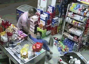 正所谓"拳怕少壮", 看到这里,真担心老板会不会 因为体力问题而被歹徒伤害~ 但随后老板一记爆发的"连环巴掌" 震惊了所有人~ 开始了绝地"反杀"!