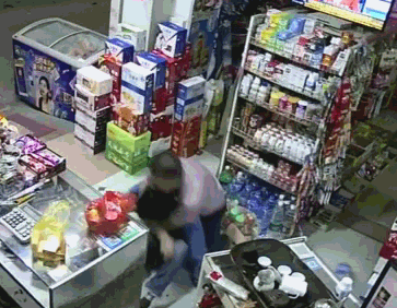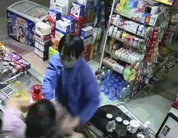 起先,歹徒一直伺机而动, 装作付款让老板放松警惕~